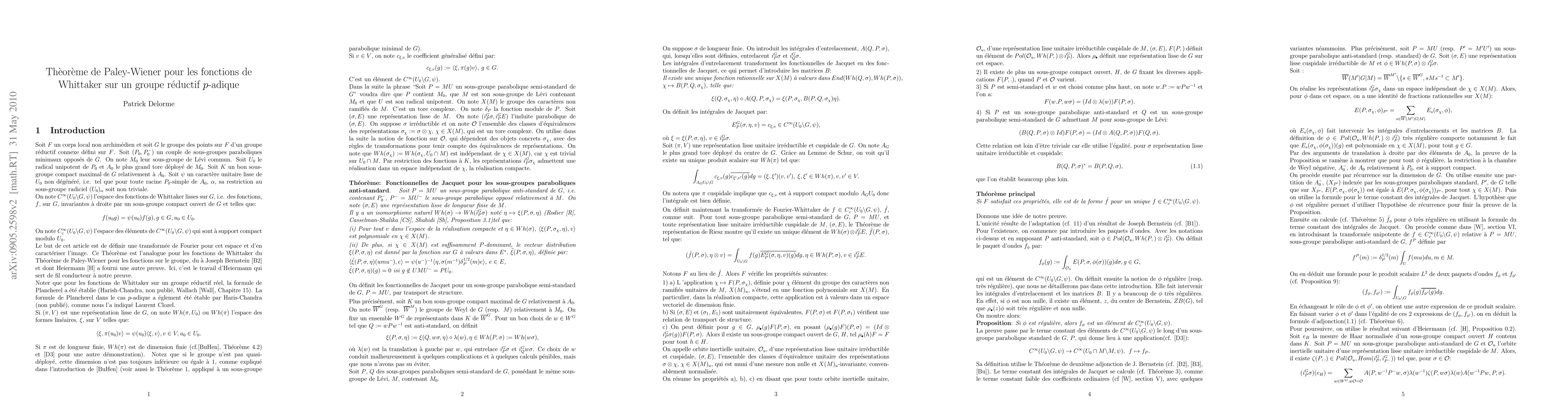 We define the Fourier transform of compactly supported Whittaker functions on a reductive p-adic group and we characterize the image of this transformation.