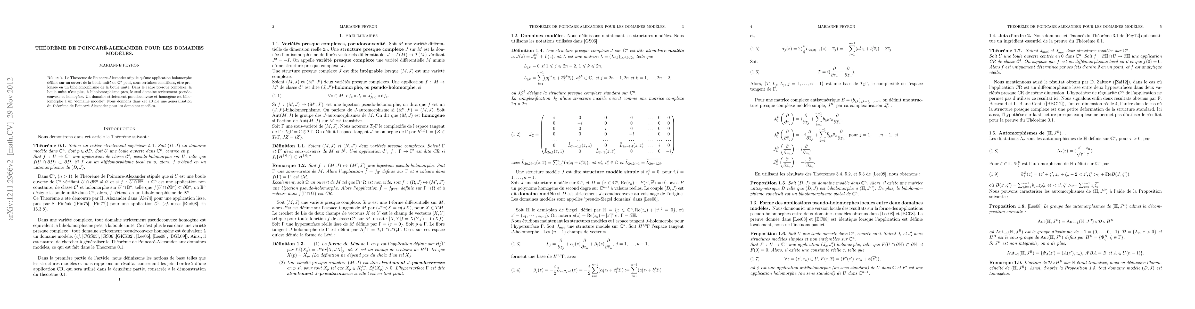 The Poincar\'e-Alexander Theorem states that holomorphic mappings defined on an open subset of the unit ball of $C^n$ may, under certain conditions, be extended to a biholomorphism of the unit ball. In a complex manifold, every strongly pseudoconvex homogeneous domain is biholomorphic to the unit ball. In an almost complex manifold, the unit ball is not the only strongly pseudoconvex homogeneous domain. A strongly pseudoconvex homogeneous domain is biholomorphic to a model domain. The aim of this paper is to extend this theorem to model domains.