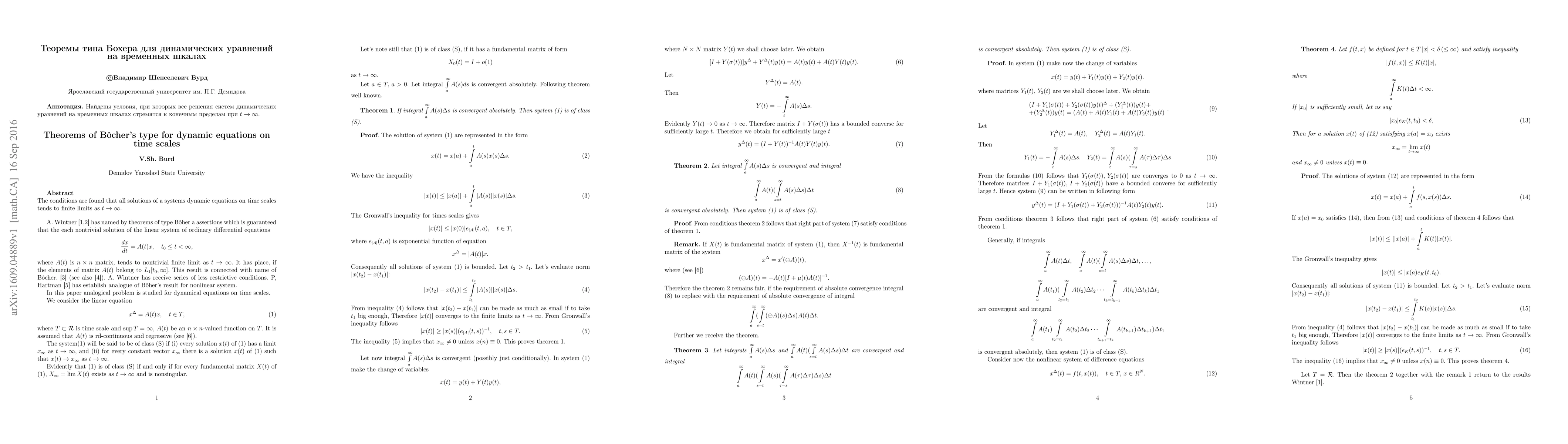 The conditions are found that all solutions of a systems dynamic equations on time scales tends to finite limits as $t\to\infty$.