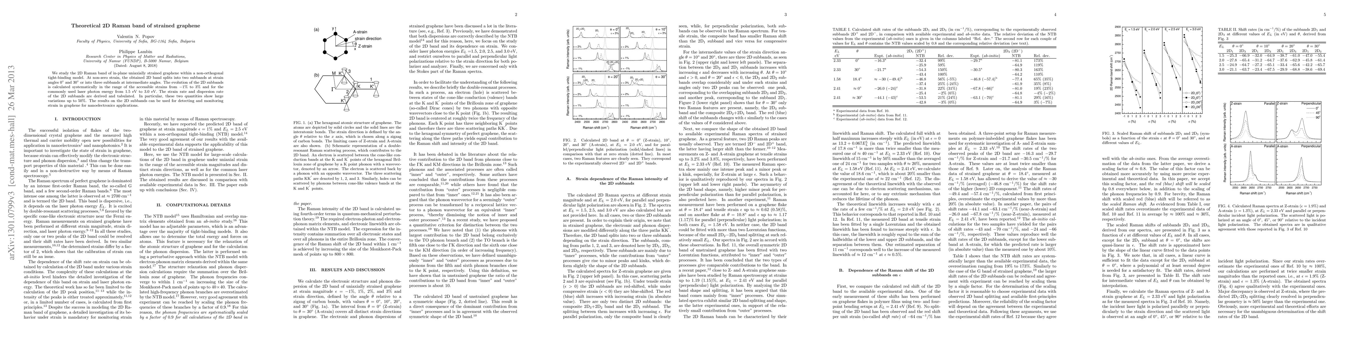 This paper investigates the behavior of the 2D Raman band in strained graphene using a non-orthogonal tight-binding model, finding that it splits into subbands under strain, with significant variations in strain and dispersion rates. These results provide a method for strain detection in graphene for nanoelectronics.