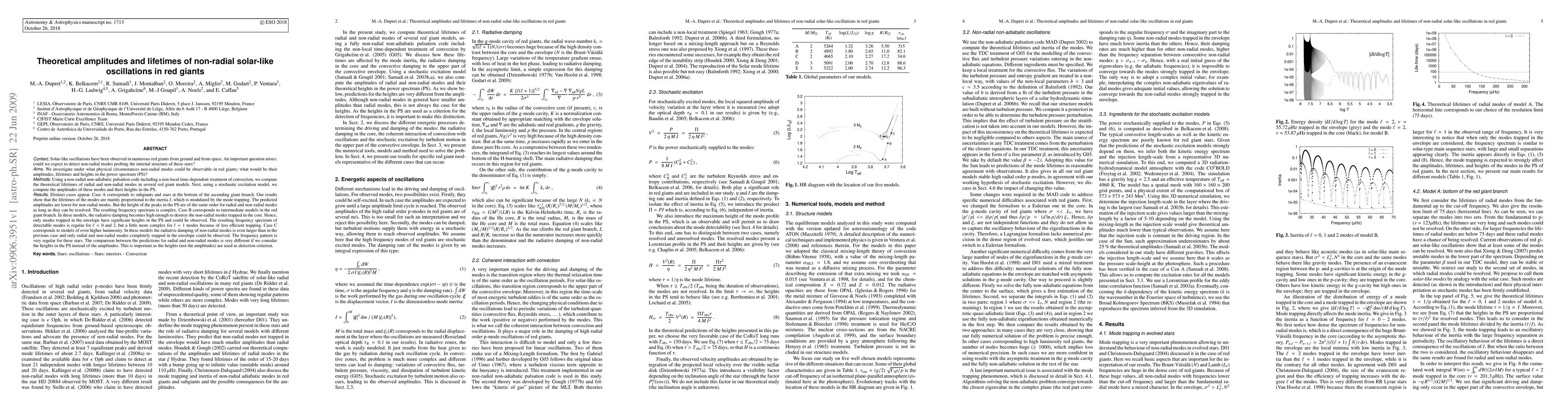 Researchers studied solar-like oscillations in red giants, finding that their lifetimes and amplitudes depend on the star's evolutionary status, with distinct results for different stages of evolution.