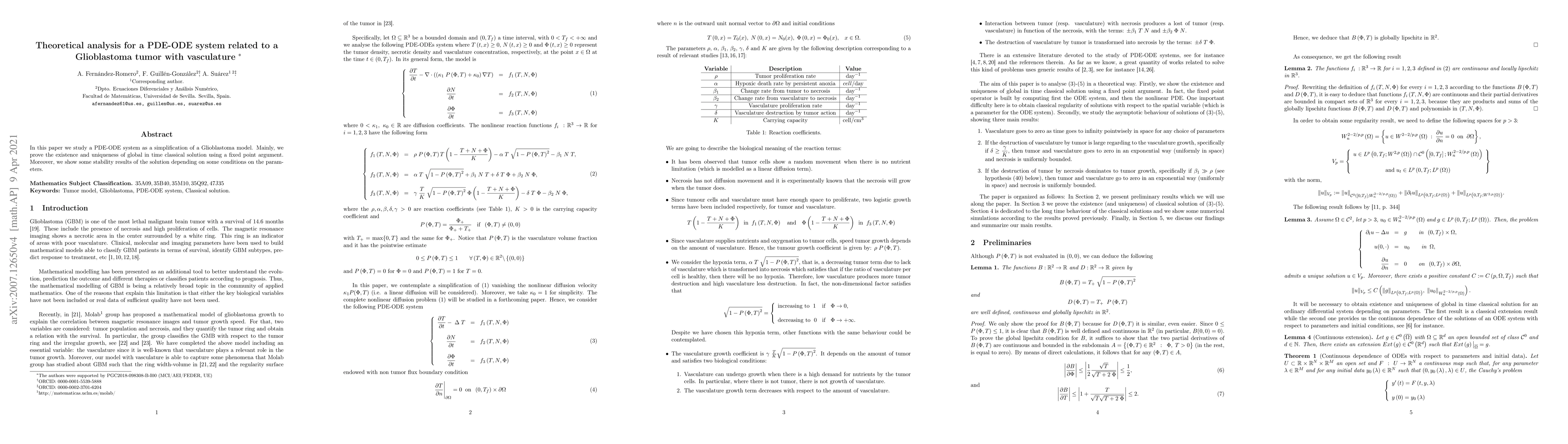 Researchers developed a mathematical model to study Glioblastoma tumors with vasculature, proving the existence of a solution and its stability under certain conditions.