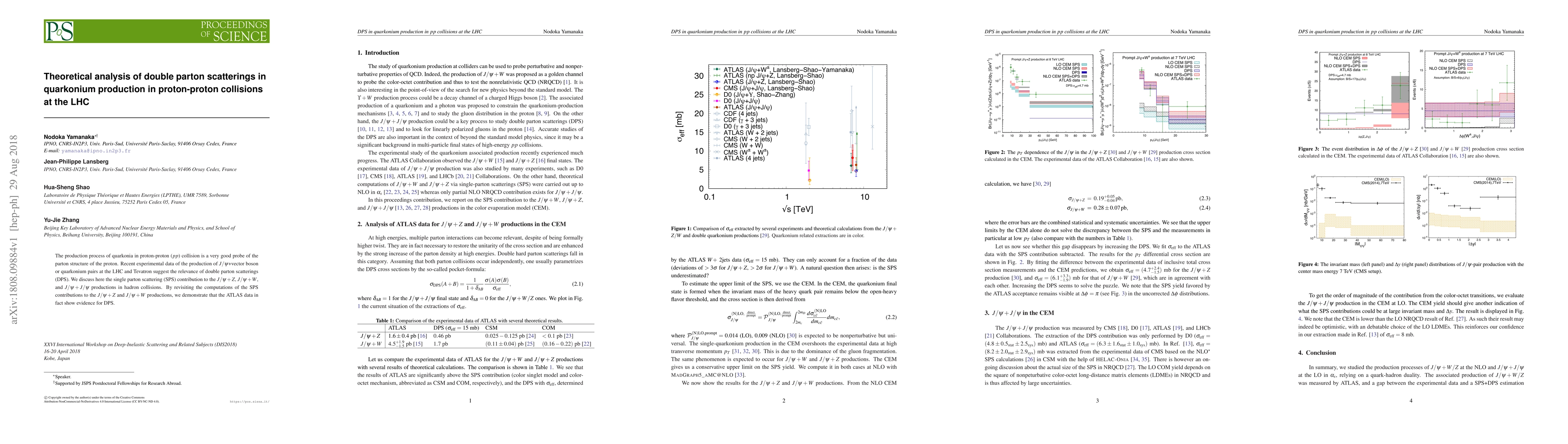 The production process of quarkonia in proton-proton (pp) collision is a very good probe of the parton structure of the proton. Recent experimental data of the production of J/psi+vector boson or quarkonium pairs at the LHC and Tevatron suggest the relevance of double parton scatterings (DPS). We discuss here the single parton scattering (SPS) contribution to the J/psi +Z, J/psi +W, and J/psi +J/psi productions in hadron collisions. By revisiting the computations of the SPS contributions to the J/psi+Z and J/psi +W productions, we demonstrate that the ATLAS data in fact show evidence for DPS.