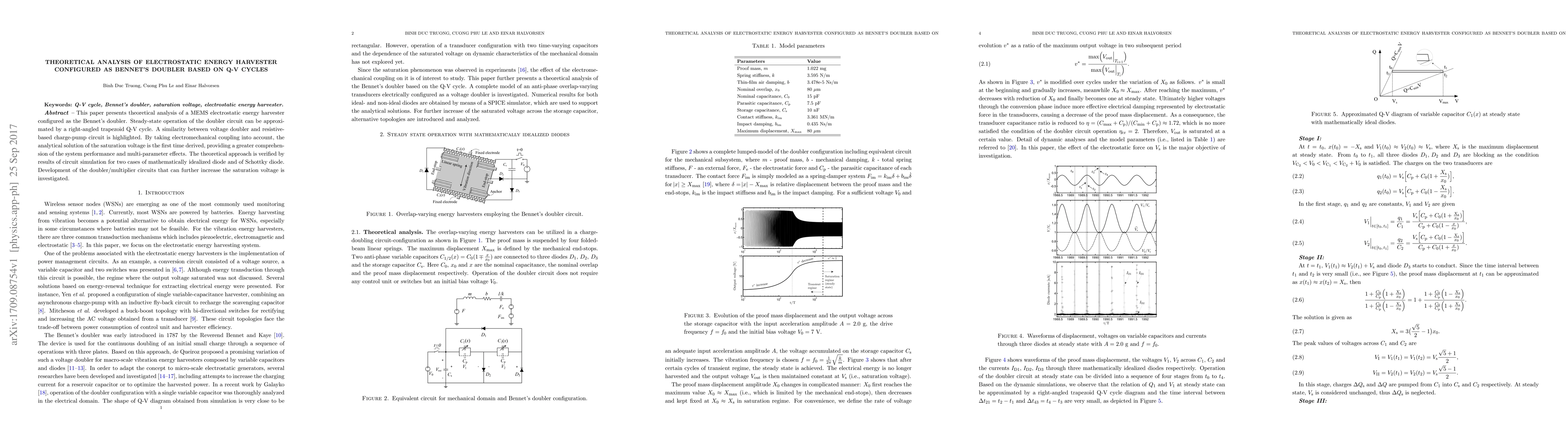 Researchers analyze an electrostatic energy harvester using Bennet's doubler circuit, deriving a new analytical solution for saturation voltage by considering electromechanical coupling. This study aims to improve the system's performance and explore ways to increase the saturation voltage.