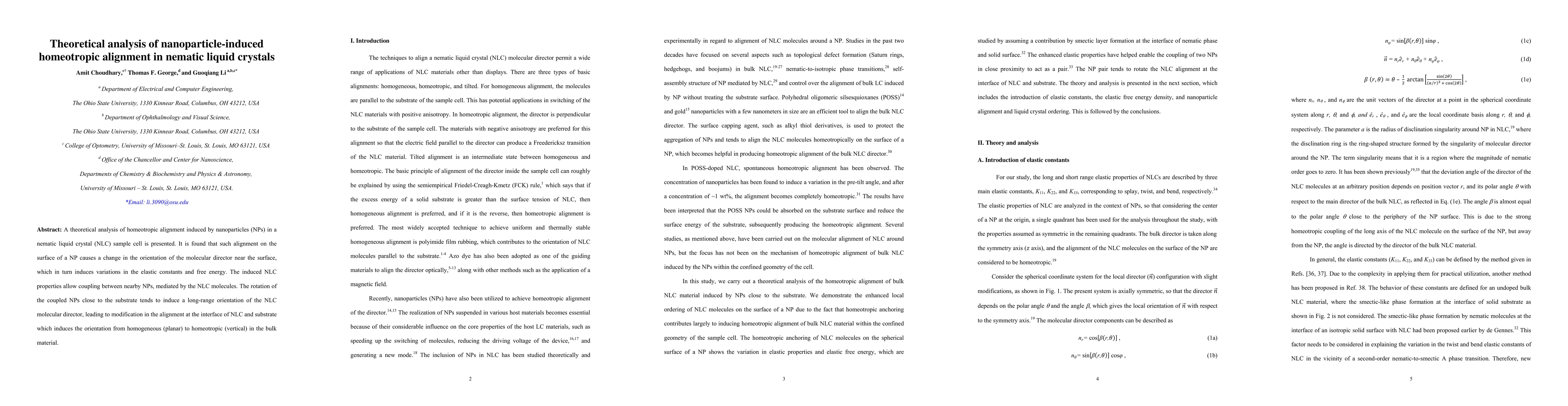 Nanoparticles induce homeotropic alignment in nematic liquid crystals by changing molecular director orientation near the surface, leading to long-range coupling and a shift from planar to vertical alignment.