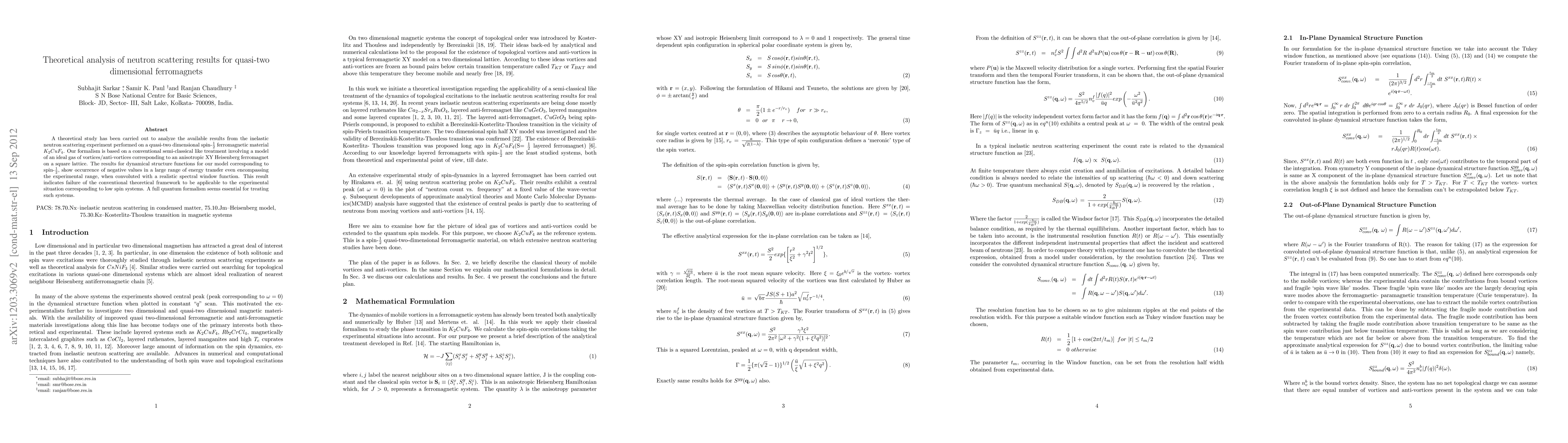 This paper theoretically analyzes neutron scattering results for quasi-two-dimensional ferromagnets, specifically $K_2CuF_4$. The study reveals that conventional semi-classical models fail to predict negative values in dynamical structure functions, suggesting a need for a full quantum treatment for low spin systems.