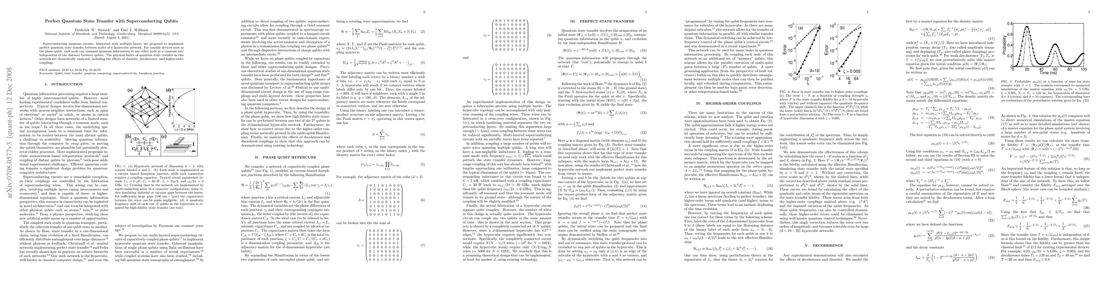 Superconducting quantum circuits, fabricated with multiple layers, are proposed to implement perfect quantum state transfer between nodes of a hypercube network. For tunable devices such as the phase qubit, each node can transmit quantum information to any other node at a constant rate independent of the distance between qubits. The physical limits of quantum state transfer in this network are theoretically analyzed, including the effects of disorder, decoherence, and higher-order couplings.