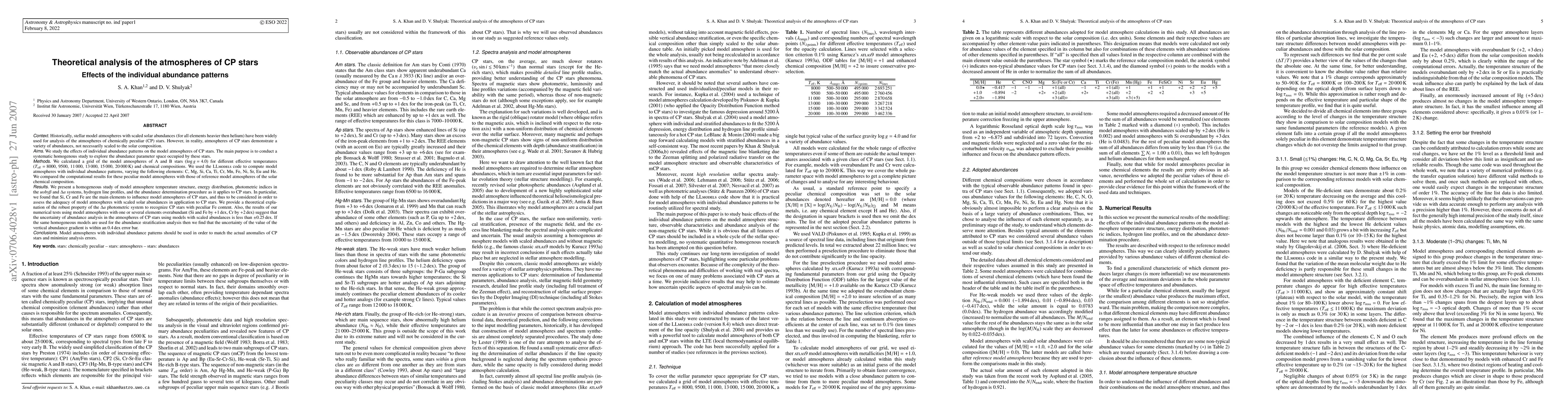 This paper presents a theoretical analysis of CP stars' atmospheres, emphasizing the effects of individual abundance patterns. The study finds that Si, Cr, and Fe significantly influence model atmospheres, suggesting that models with scaled solar abundances may not be adequate for CP stars. The research concludes that using model atmospheres with individual abundance patterns can minimize analysis errors.