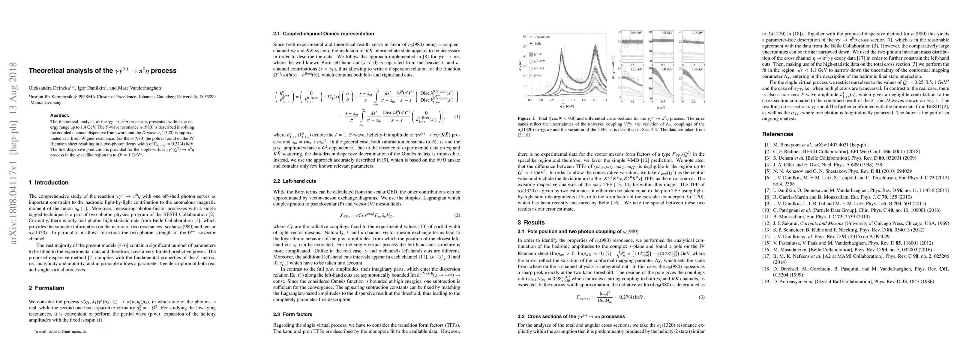 This paper presents a theoretical analysis of the $\gamma\gamma \to \pi^0\eta$ process up to 1.4 GeV, focusing on the $S$-wave resonance $a_0(980)$ and the $D$-wave $a_2(1320)$. The study provides a two-photon decay width for $a_0(980)$ and the first dispersive prediction for the single-virtual $\gamma\gamma^*(Q^2)\to\pi^0\eta$ process.