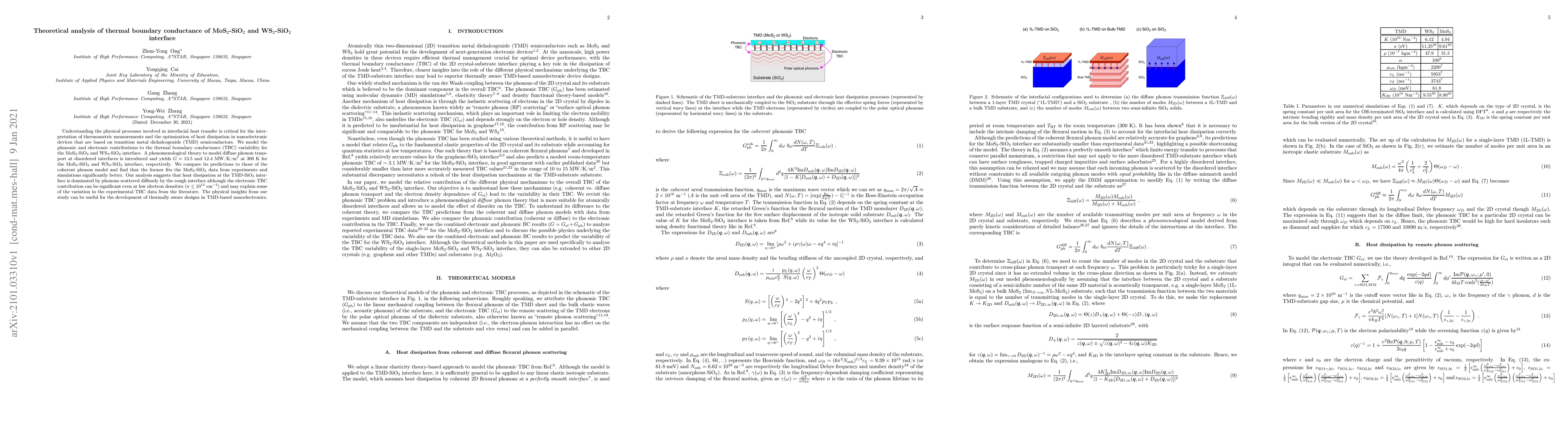 Understanding the physical processes involved in interfacial heat transfer is critical for the interpretation of thermometric measurements and the optimization of heat dissipation in nanoelectronic devices that are based on transition metal dichalcogenide (TMD) semiconductors. We model the phononic and electronic contributions to the thermal boundary conductance (TBC) variability for the MoS$_{2}$-SiO$_{2}$ and WS$_{2}$-SiO$_{2}$ interface. A phenomenological theory to model diffuse phonon transport at disordered interfaces is introduced and yields $G$=13.5 and 12.4 MW/K/m$^{2}$ at 300 K for the MoS$_{2}$-SiO$_{2}$ and WS$_{2}$-SiO$_{2} $ interface, respectively. We compare its predictions to those of the coherent phonon model and find that the former fits the MoS$_{2}$-SiO$_{2}$ data from experiments and simulations significantly better. Our analysis suggests that heat dissipation at the TMD-SiO$_{2}$ interface is dominated by phonons scattered diffusely by the rough interface although the electronic TBC contribution can be significant even at low electron densities ($n\leq10^{12}$ cm$^{-2}$) and may explain some of the variation in the experimental TBC data from the literature. The physical insights from our study can be useful for the development of thermally aware designs in TMD-based nanoelectronics.