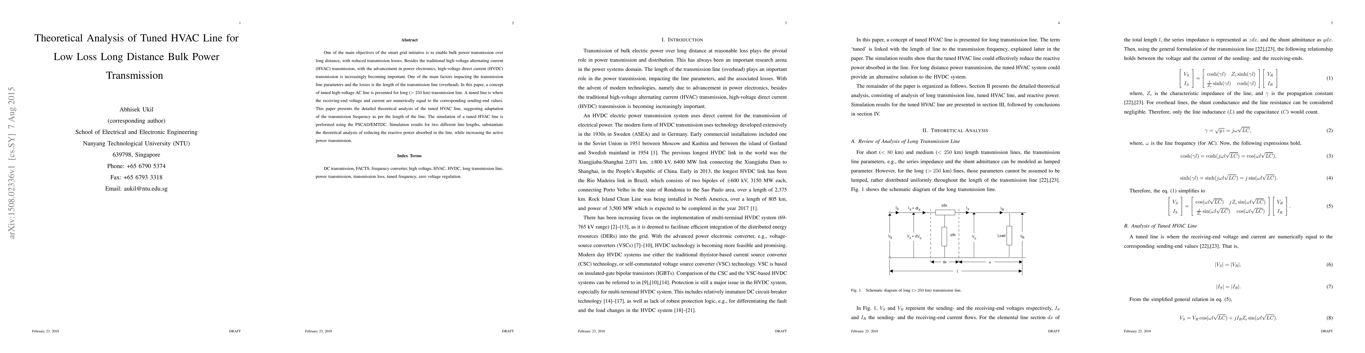 This paper proposes a tuned high-voltage AC line for long-distance power transmission, aiming to reduce losses by equalizing receiving-end voltage and current with sending-end values. Theoretical analysis suggests adapting transmission frequency based on line length, and simulations using PSCAD/EMTDC confirm reduced reactive power absorption and increased active power transmission.