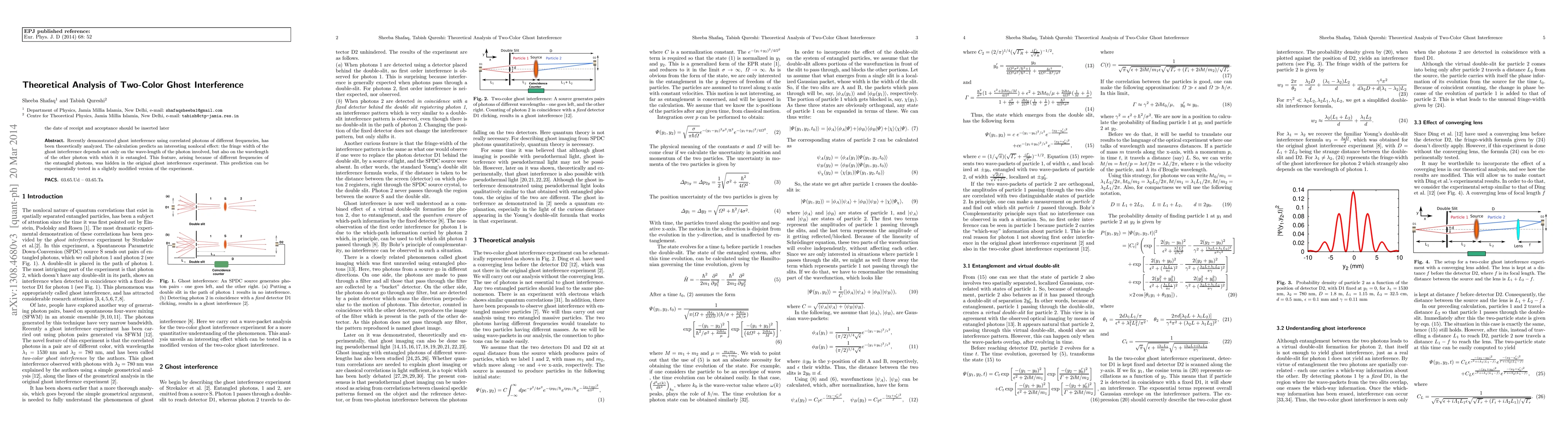This paper theoretically analyzes ghost interference using entangled photons of different frequencies, predicting that the fringe width depends on both photons' wavelengths, revealing a new nonlocal effect that can be tested in a modified experiment.