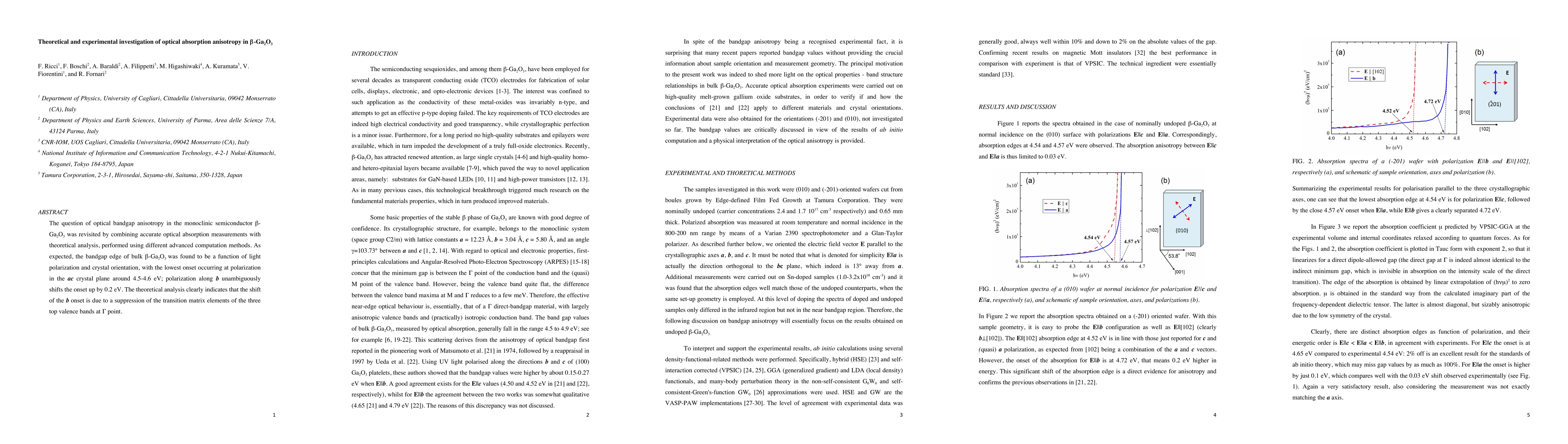 This paper investigates optical absorption anisotropy in $\beta$-Ga2O3, revealing that the bandgap varies with light polarization and crystal orientation. Experimental and theoretical analyses confirm a lowest bandgap onset of 4.5-4.6 eV in the ac plane, with a 0.2 eV increase along the b direction, attributed to the suppression of transition matrix elements of the top valence bands.