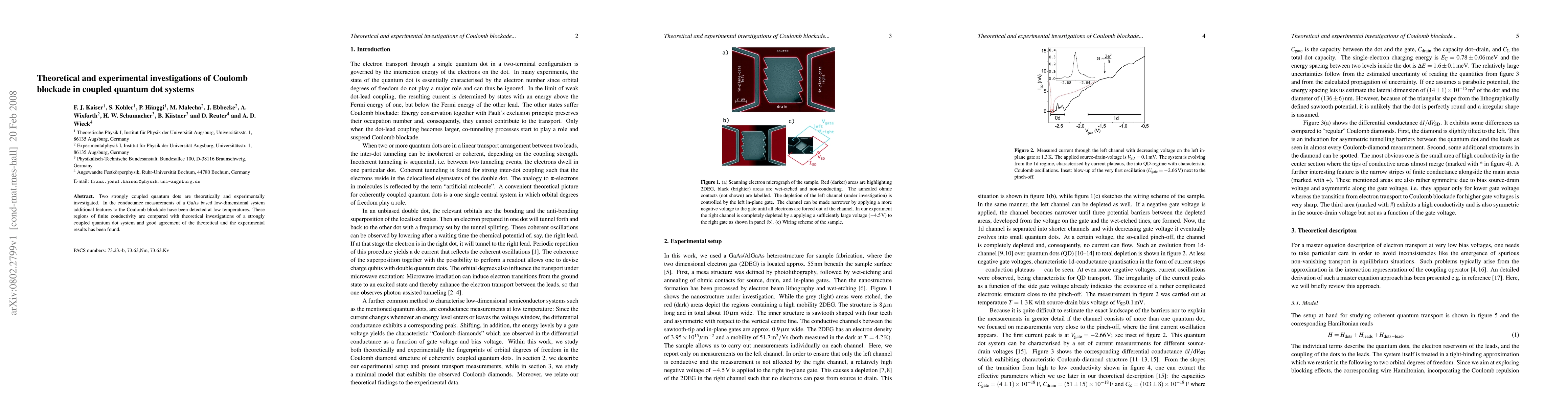 This paper investigates both theoretically and experimentally the Coulomb blockade in coupled quantum dot systems, revealing additional conductance features in GaAs-based low-dimensional systems at low temperatures. The experimental findings align well with theoretical models of strongly coupled quantum dots.