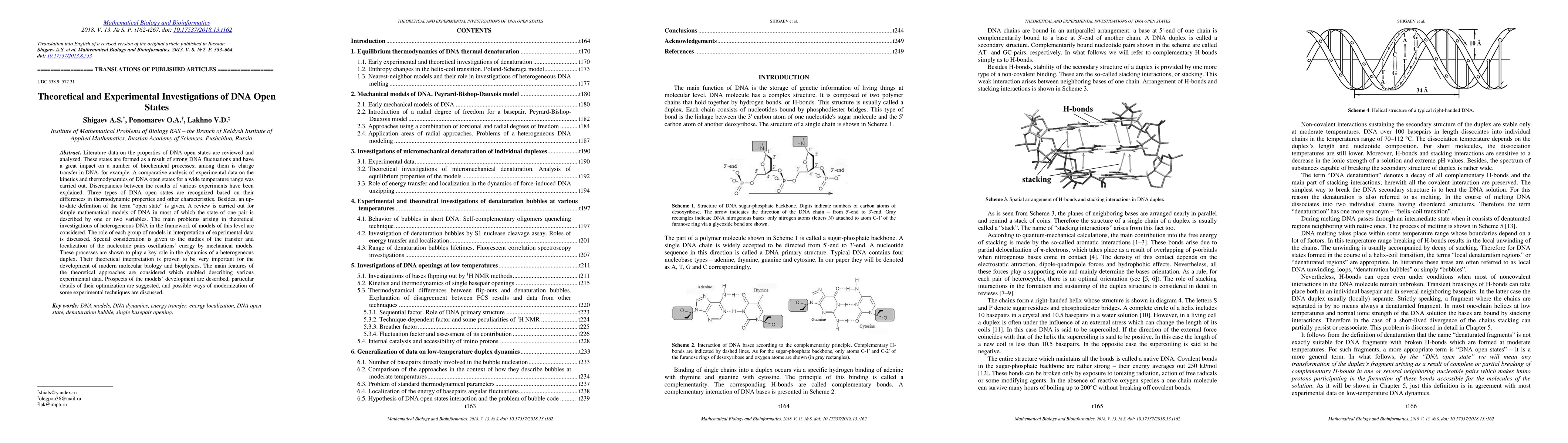 Literature data on the properties of DNA open states are reviewed and analyzed. These states are formed as a result of strong DNA fluctuations and have a great impact on a number of biochemical processes; among them is charge transfer in DNA, for example. A comparative analysis of experimental data on the kinetics and thermodynamics of DNA open states for a wide temperature range was carried out. Discrepancies between the results of various experiments have been explained. Three types of DNA open states are recognized based on their differences in thermodynamic properties and other characteristics. Besides, an up-to-date definition of the term "open state" is given. A review is carried out for simple mathematical models of DNA in most of which the state of one pair is described by one or two variables. The main problems arising in theoretical investigations of heterogeneous DNA in the framework of models of this level are considered. The role of each group of models in interpretation of experimental data is discussed. Special consideration is given to the studies of the transfer and localization of the nucleotide pairs oscillations' energy by mechanical models. These processes are shown to play a key role in the dynamics of a heterogeneous duplex. Their theoretical interpretation is proven to be very important for the development of modern molecular biology and biophysics. The main features of the theoretical approaches are considered which enabled describing various experimental data. Prospects of the models' development are described, particular details of their optimization are suggested, and possible ways of modernization of some experimental techniques are discussed.