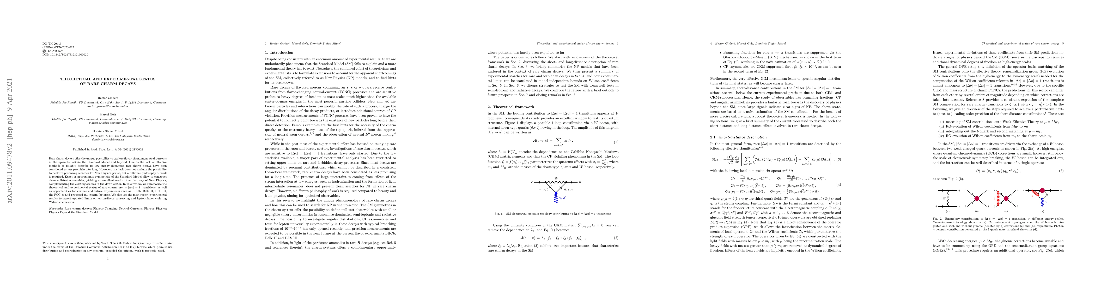 This paper reviews the theoretical and experimental status of rare charm decays, emphasizing the potential for discovering new physics through precise measurements of flavour-changing neutral currents. It highlights current and future experimental opportunities and updates limits on Wilson coefficients for lepton-flavour conserving and violating processes.
