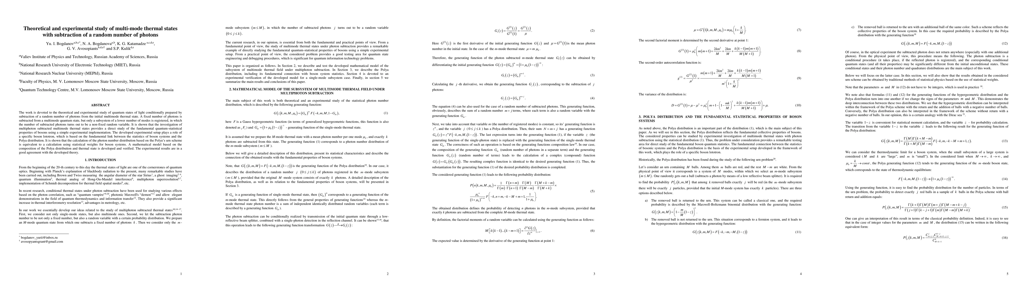 Researchers studied quantum states of light by subtracting random photons from a thermal state, revealing properties of bosons using a simple experimental setup that mimics the Polya distribution.