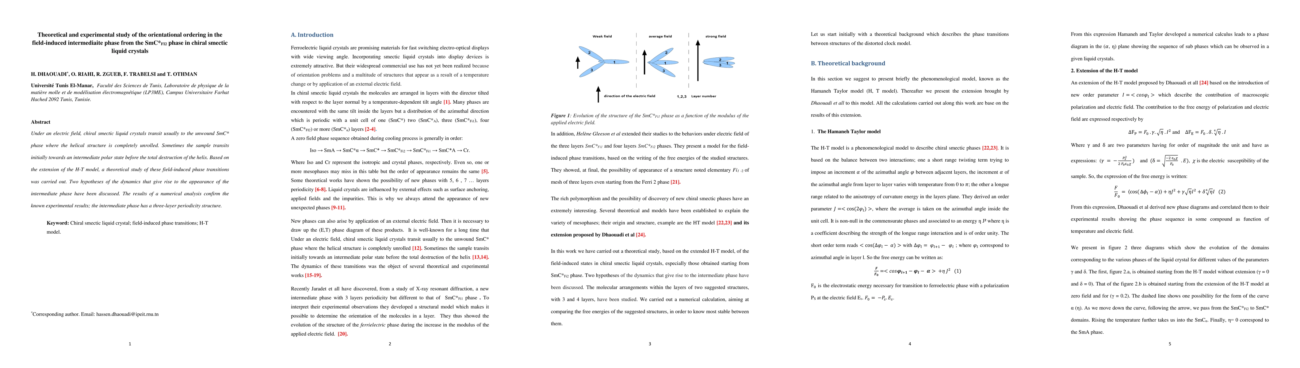 This paper investigates the orientational ordering in chiral smectic liquid crystals transitioning to an intermediate phase under an electric field, using both theoretical and experimental methods. The study confirms the existence of a three-layer periodicity structure in the intermediate phase, supported by numerical analysis and experimental observations.