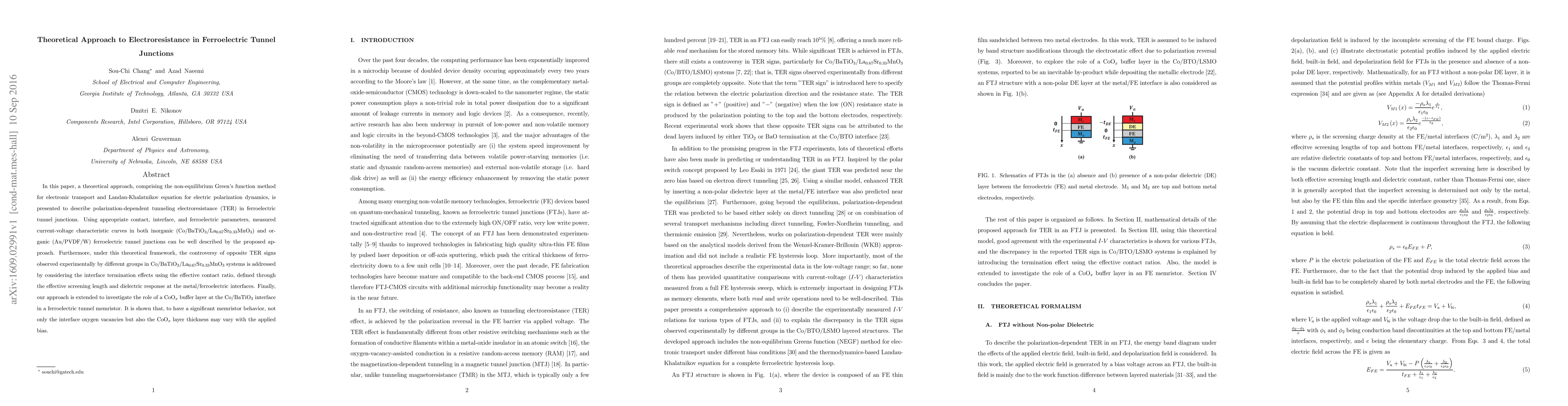 This paper presents a theoretical framework using the non-equilibrium Green's function method and Landau-Khalatnikov equation to describe polarization-dependent electroresistance in ferroelectric tunnel junctions, addressing experimental discrepancies and exploring the impact of interface conditions and CoO$_{x}$ buffer layers on memristor behavior.