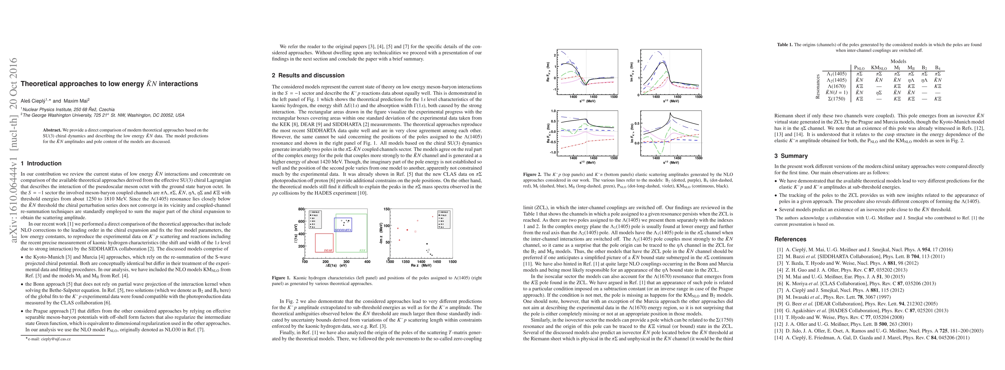 We provide a direct comparison of modern theoretical approaches based on the SU(3) chiral dynamics and describing the low energy $\bar{K}N$ data. The model predictions for the $\bar{K}N$ amplitudes and pole content of the models are discussed.