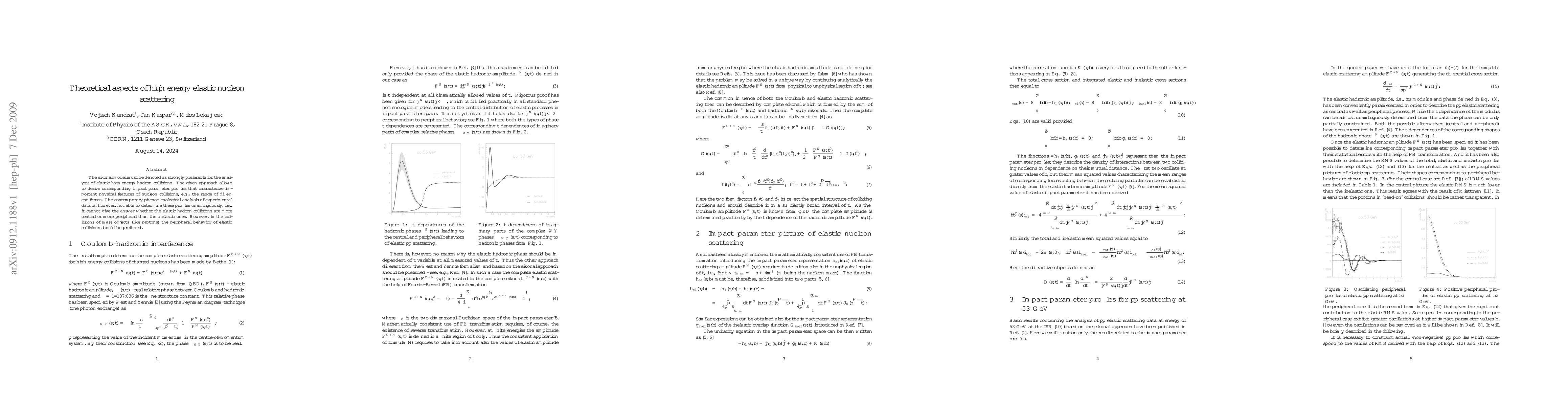 The eikonal model must be denoted as strongly preferable for the analysis of elastic high-energy hadron collisions. The given approach allows to derive corresponding impact parameter profiles that characterize important physical features of nucleon collisions, e.g., the range of different forces. The contemporary phenomenological analysis of experimental data is, however, not able to determine these profiles unambiguously, i.e., it cannot give the answer whether the elastic hadron collisions are more central or more peripheral than the inelastic ones. However, in the collisions of mass objects (like protons) the peripheral behavior of elastic collisions should be preferred.