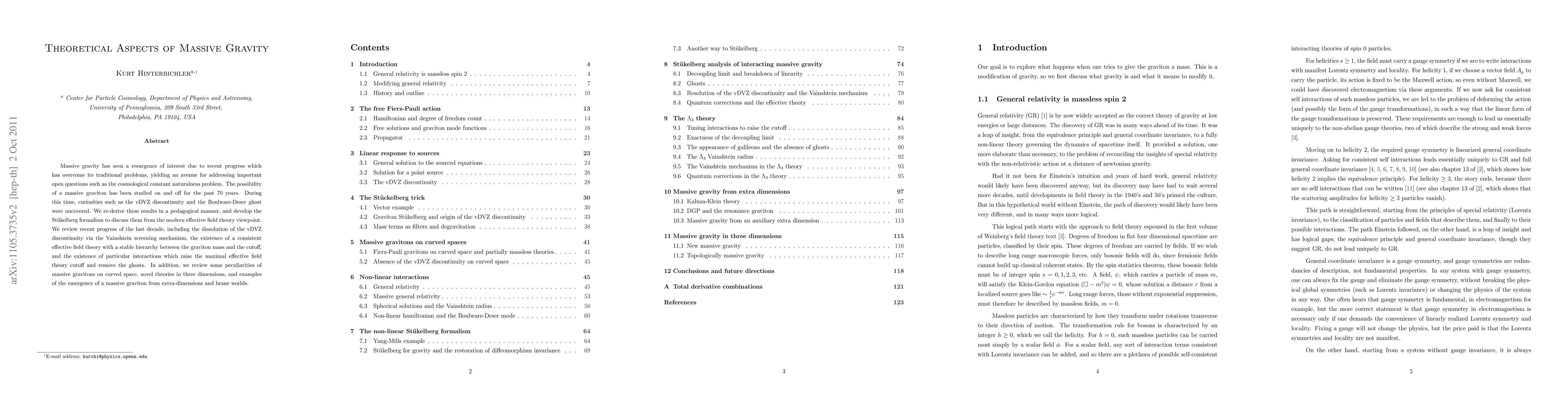 This paper revisits the theoretical framework of massive gravity, addressing long-standing issues like the vDVZ discontinuity and the Boulware-Deser ghost, and explores recent advancements, including the Vainshtein mechanism and the emergence of consistent effective field theories. It also discusses the potential of massive gravity to solve the cosmological constant problem and examines novel theories and brane world scenarios.