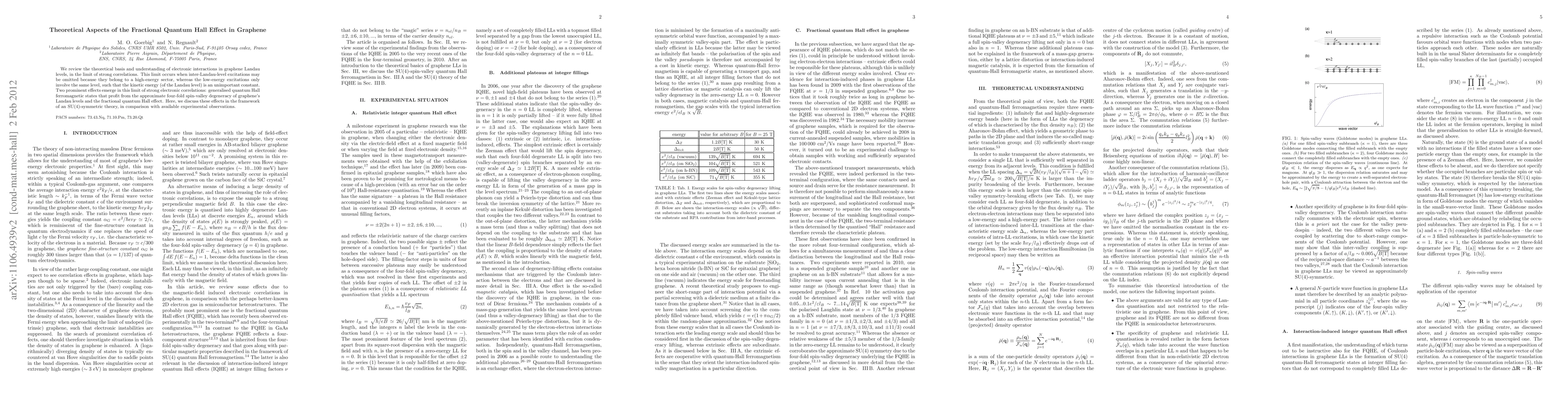 This paper reviews the theoretical framework for understanding strong electronic correlations in graphene's Landau levels, focusing on the emergence of generalised quantum Hall ferromagnetic states and the fractional quantum Hall effect, analyzed within an SU(4)-symmetric theory and compared to experimental observations.