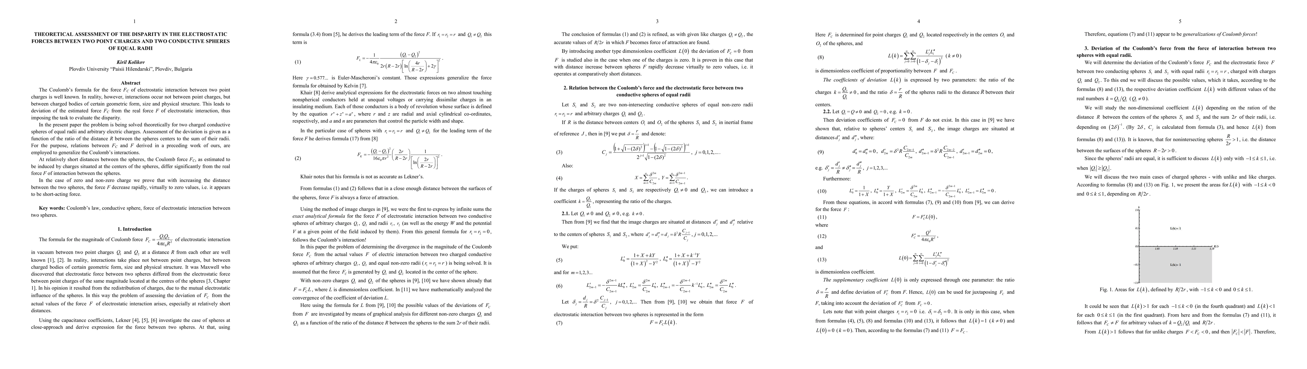 This paper theoretically assesses the disparity in electrostatic forces between two conductive spheres of equal radii compared to point charges using Coulomb's formula. The study finds that the estimated Coulomb force significantly deviates from the actual force at short distances, showing that the real force diminishes rapidly with increasing distance.