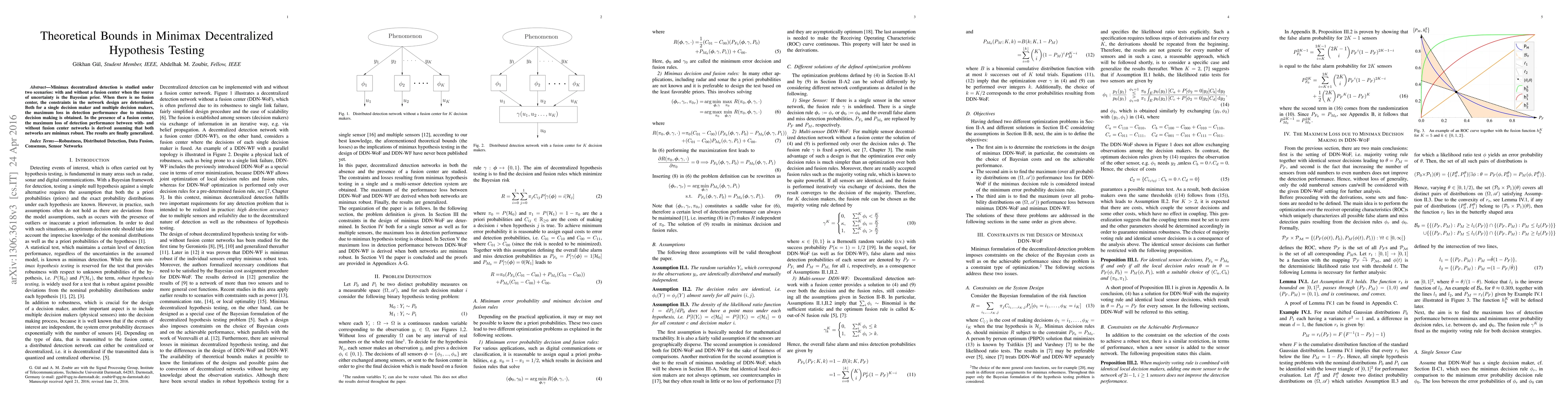 This paper investigates minimax decentralized hypothesis testing under two scenarios: with and without a fusion center, focusing on Bayesian prior uncertainties. It derives theoretical bounds on the maximum loss in detection performance due to minimax decision-making in both settings and generalizes the results for both single and multiple decision-makers.