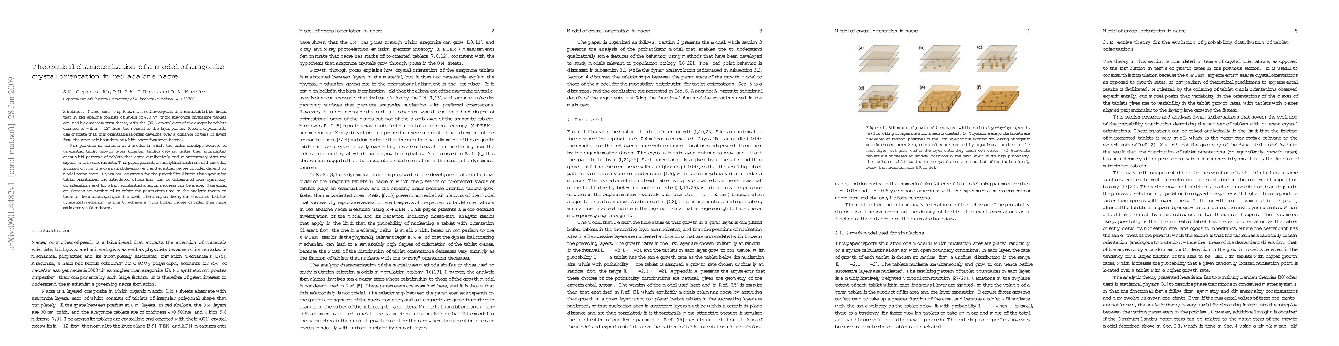 This paper analytically characterizes a model explaining the orientation of aragonite crystals in red abalone nacre, showing that differential growth rates can lead to high-order orientational patterns. The study reveals that the dynamical mechanism achieves a greater degree of order than expected, validated by numerical simulations.