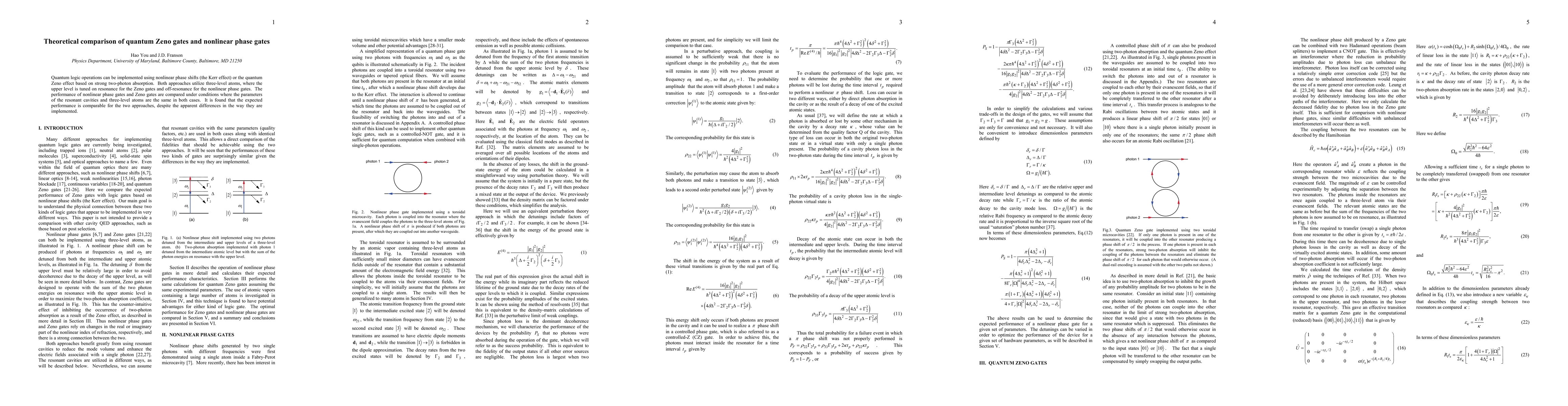 This paper compares quantum Zeno gates and nonlinear phase gates, both implemented using three-level atoms, finding comparable performance despite their different operational mechanisms based on the quantum Zeno effect and the Kerr effect. The study highlights the similarities in their effectiveness under identical resonant cavity and atom parameters.