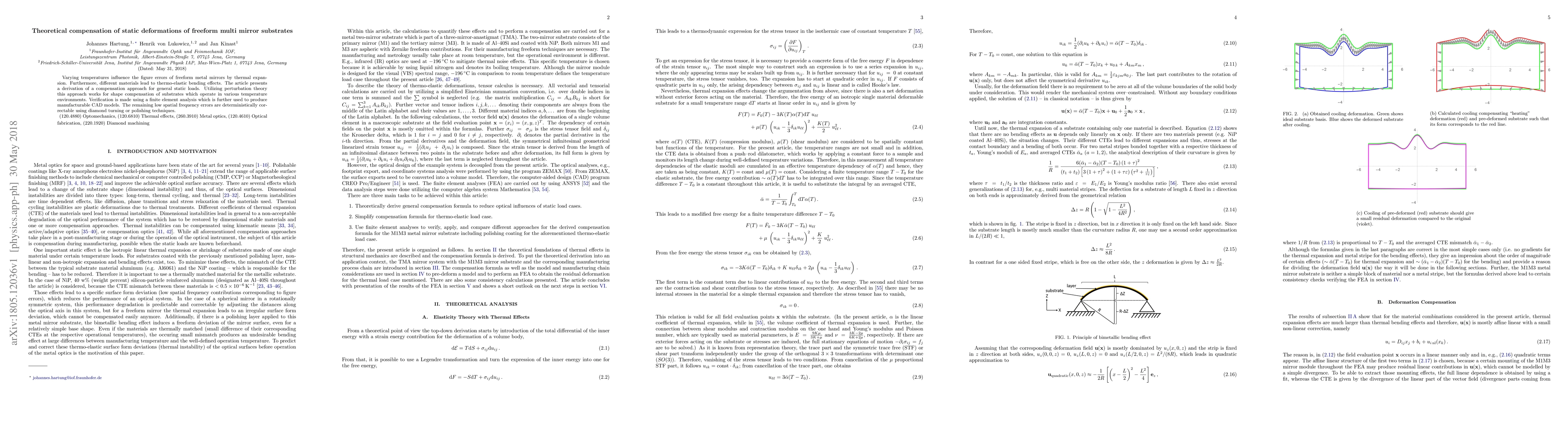 A new compensation approach is developed to correct static deformations in freeform metal mirrors caused by temperature changes and material properties. This approach uses perturbation theory to compensate for shape errors, with verification through finite element analysis and manufacturable CAD models.