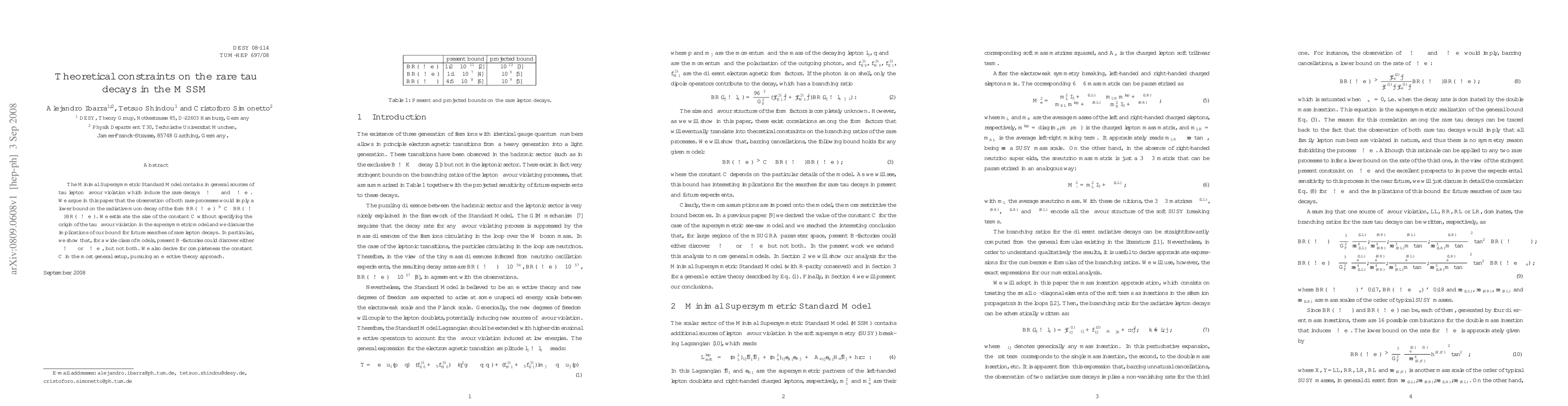 This paper explores theoretical constraints on rare tau decays in the MSSM, showing that the observation of both tau --> mu gamma and tau --> e gamma implies a lower bound on radiative muon decay. The study estimates the constant C linking these decays and discusses implications for future searches, noting that B-factories may detect one but not both rare tau decays.