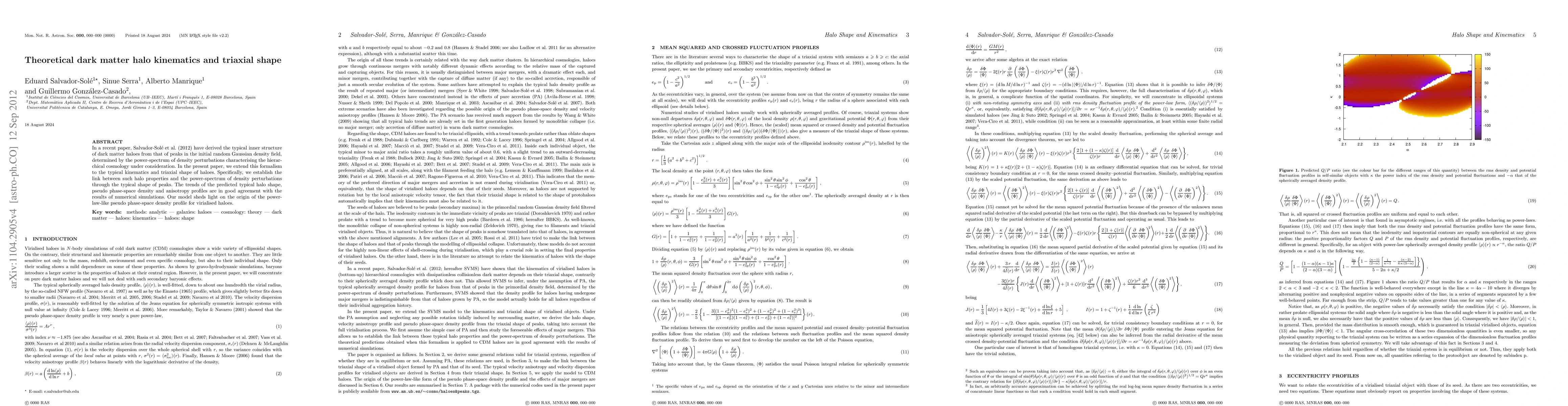 This paper extends the theoretical framework for understanding the kinematics and triaxial shape of dark matter haloes by linking these properties to the initial density perturbations' power-spectrum, revealing good agreement with numerical simulations and explaining the pseudo phase-space density profile.