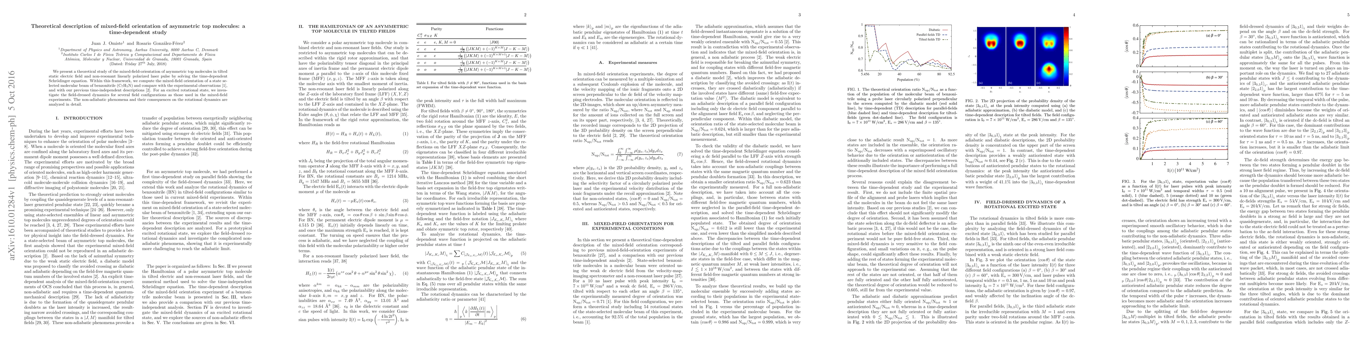 This paper presents a theoretical study of the mixed-field orientation of asymmetric top molecules under the influence of a static electric field and a non-resonant laser pulse, solving the time-dependent Schrödinger equation. The findings are compared with experimental observations and previous time-independent models, focusing on the non-adiabatic phenomena affecting the rotational dynamics of benzonitrile.