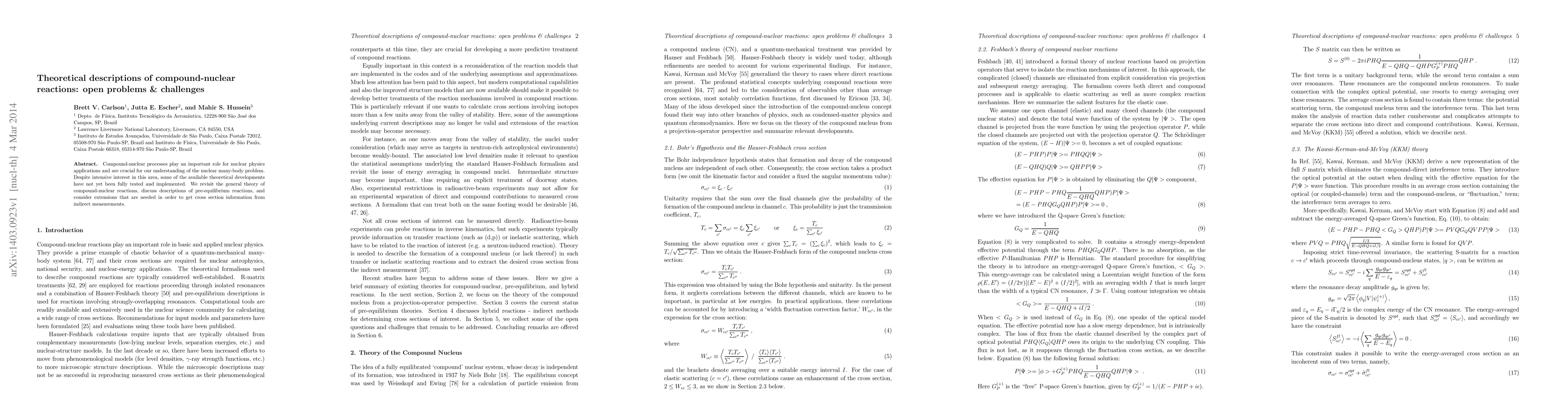 This paper reviews theoretical frameworks for compound-nuclear reactions, highlighting unresolved issues and challenges, particularly in pre-equilibrium reaction descriptions and the need for extensions to extract cross section data from indirect measurements.