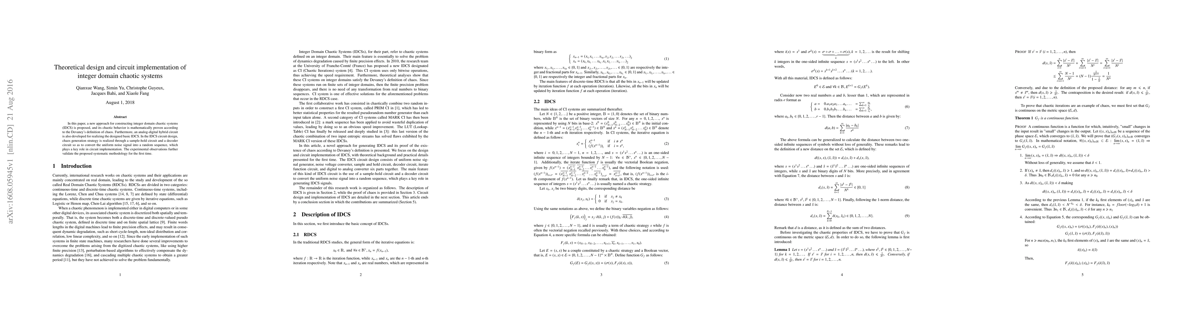 This paper proposes a new method for constructing integer domain chaotic systems (IDCS) and mathematically proves their chaotic behavior. An analog-digital hybrid circuit is developed to implement the IDCS, utilizing a sample-hold and decoder circuit to convert noise into a random sequence, validated by experimental observations.