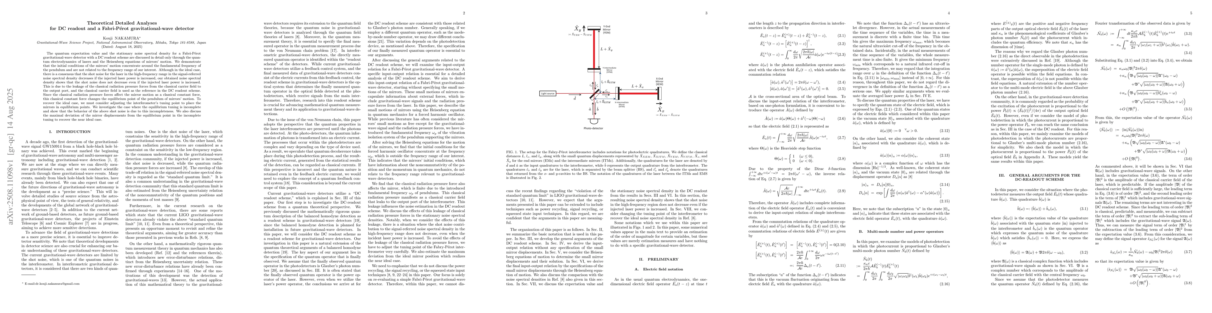 The quantum expectation value and the stationary noise spectral density for a Fabri-P\'erot gravitational-wave detector with a DC readout scheme are discussed in detail only through the quantum electrodynamics of lasers and the Heisenberg equations of mirrors' motion. We demonstrate that the initial conditions of the mirrors' motion concentrate around the fundamental frequency of the pendulum and are not related to the frequency range of our interest. Although in the ideal case, there is a consensus that the shot noise for the laser in the high-frequency range in the signal-referred noise spectral density decreases if the injected laser power is increased, our obtained noise spectral density shows that the shot noise does not decrease even if the injected laser power is increased. This is due to the leakage of the classical radiation pressure forces from the classical carrier field to the output port, and the classical carrier field is used as the reference in the DC readout scheme. Since the classical radiation pressure forces affect the mirror motion as a classical constant force, this classical constant force changes the equilibrium point of the pendulum of mirrors' motion. To recover the ideal case, we must consider adjusting the interferometer's tuning point to place the mirrors in equilibrium points. We investigate the case where the equilibrium tuning is incomplete and show that the behavior of the above shot noise is due to this incompleteness. We also discuss the maximal deviation of the mirror displacements from the equilibrium point in the incomplete tuning to recover the near ideal case.