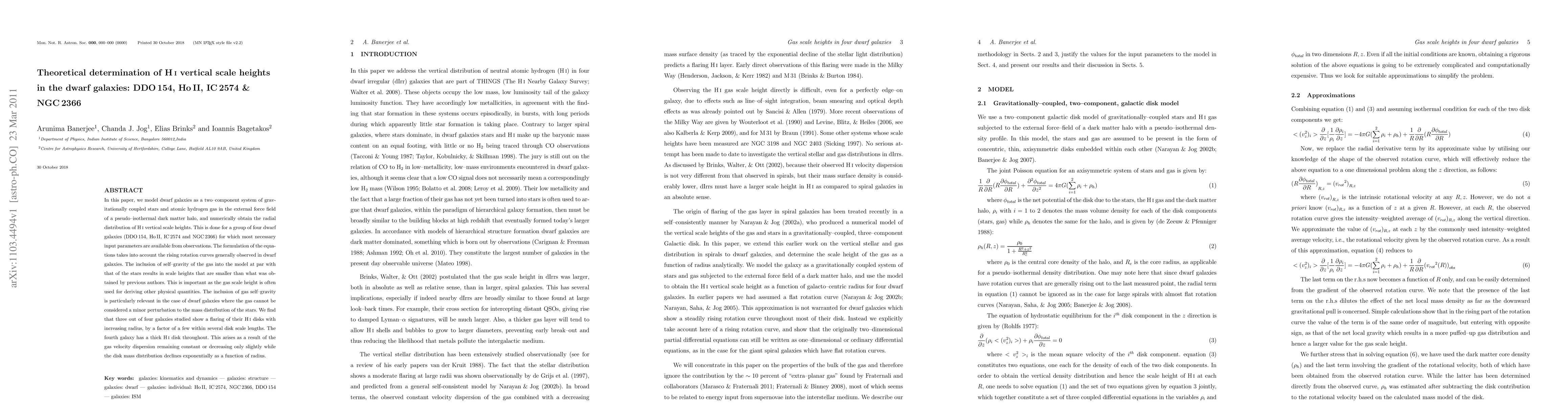 In this paper, we model dwarf galaxies as a two-component system of gravitationally coupled stars and atomic hydrogen gas in the external force field of a pseudo-isothermal dark matter halo, and numerically obtain the radial distribution of {H\,{\sc i}} vertical scale heights. This is done for a group of four dwarf galaxies (DDO\,154, Ho\,II, IC\,2574 and NGC\,2366) for which most necessary input parameters are available from observations. The formulation of the equations takes into account the rising rotation curves generally observed in dwarf galaxies. The inclusion of self-gravity of the gas into the model at par with that of the stars results in scale heights that are smaller than what was obtained by previous authors. This is important as the gas scale height is often used for deriving other physical quantities. The inclusion of gas self-gravity is particularly relevant in the case of dwarf galaxies where the gas cannot be considered a minor perturbation to the mass distribution of the stars. We find that three out of four galaxies studied show a flaring of their {H\,{\sc i}} disks with increasing radius, by a factor of a few within several disk scale lengths. The fourth galaxy has a thick {H\,{\sc i}} disk throughout. This arises as a result of the gas velocity dispersion remaining constant or decreasing only slightly while the disk mass distribution declines exponentially as a function of radius.