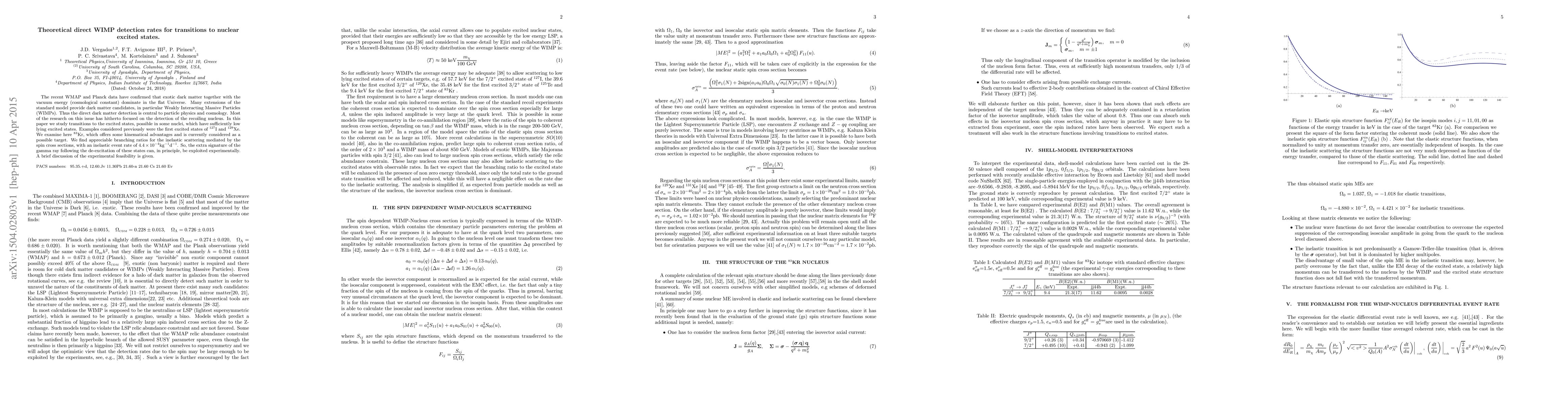 This paper explores the theoretical detection rates for Weakly Interacting Massive Particles (WIMPs) inducing transitions to nuclear excited states, focusing on $^{83}$Kr. It finds significant branching ratios for inelastic scattering, predicting an event rate of $4.4\times 10^{-4}$ kg$^{-1}$ d$^{-1}$, suggesting a potential gamma-ray signature for experimental detection.