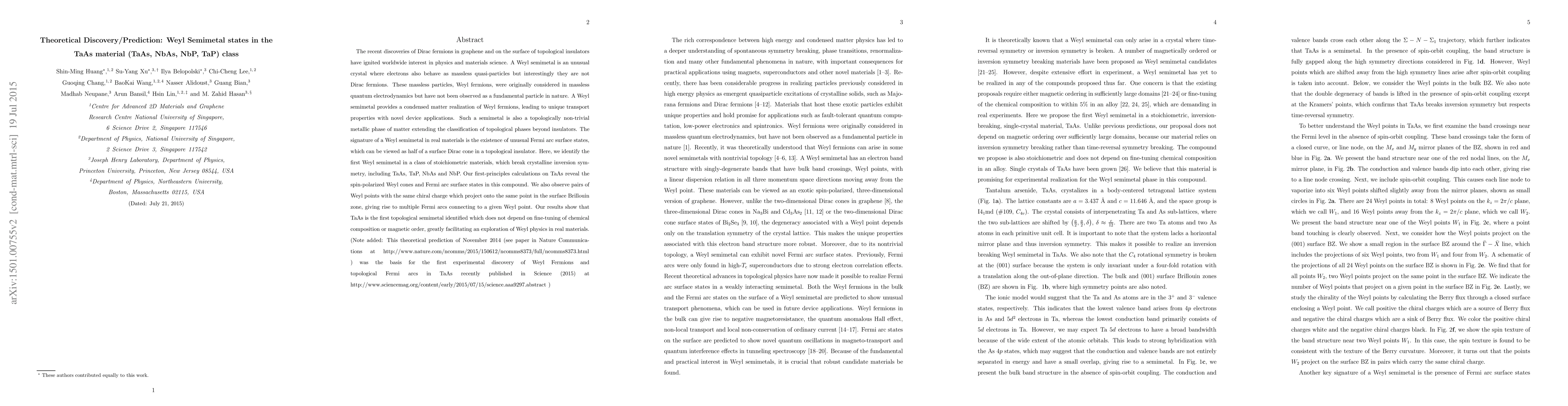 The paper theoretically identifies Weyl semimetal states in TaAs, NbAs, NbP, and TaP, demonstrating spin-polarized Weyl cones and Fermi arc surface states. The study predicts TaAs as a topological semimetal, providing a stable platform for exploring Weyl physics without the need for fine-tuning.