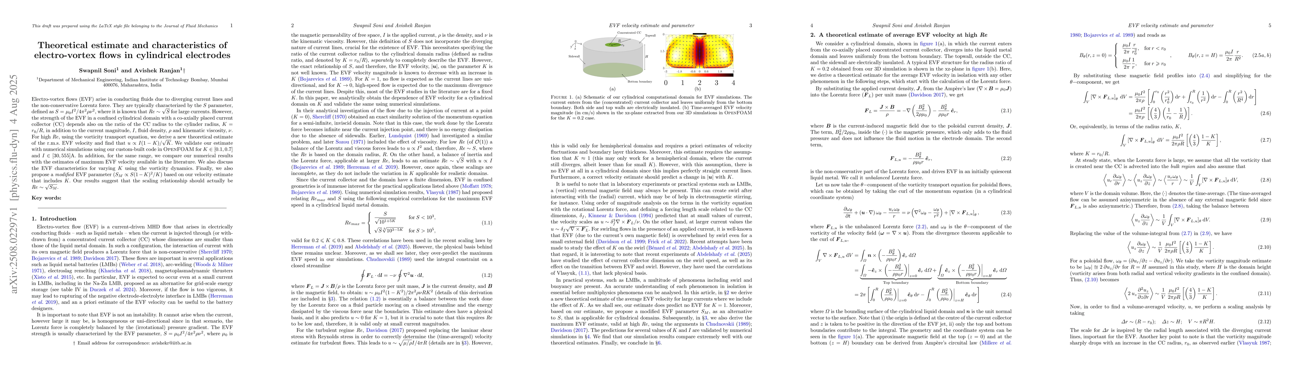 Electro-vortex flows (EVF) arise in conducting fluids due to diverging current lines and the non-conservative Lorentz force. They are typically characterized by the $S$ parameter, defined as $S=\mu _0 I^2/4\pi^2 \rho \nu^2$, where it is known that $Re \sim \sqrt{S}$ for large currents. However, the strength of the EVF in a confined cylindrical domain with a co-axially placed current collector (CC) depends also on the ratio of the CC radius to the cylinder radius, $K=r_0/R$, in addition to the current magnitude, $I$, fluid density, $\rho$ and kinematic viscosity, $\nu$. For high $Re$, using the vorticity transport equation, we derive a new theoretical estimate of the r.m.s. EVF velocity and find that $u \propto I (1-K)/\sqrt{K}$. We validate our estimate with numerical simulations using our custom-built code in \textsc{OpenFOAM} for $K\in[0.1,0.7]$ and $I\in[30,555]$\SI{}{\A}. In addition, for the same range, we compare our numerical results with the estimates of maximum EVF velocity available in the literature. We also discuss the EVF characteristics for varying $K$ using the vorticity dynamics. Finally, we also propose a \emph{modified} EVF parameter ($S_M \propto S (1-K)^2/{K}$) based on our velocity estimate that includes $K$. Our results suggest that the scaling relationship should actually be $Re \sim \sqrt{S_M}$.