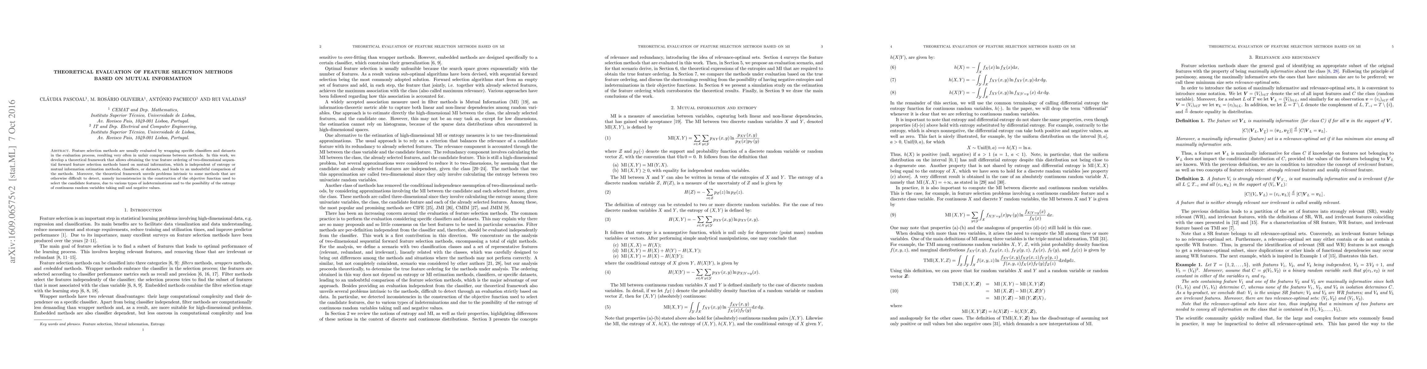 This paper proposes a theoretical framework for evaluating feature selection methods based on mutual information, independent of classifiers and datasets, to provide a fair comparison. It also identifies inherent issues in some methods, such as inconsistencies in objective function construction due to indeterminations and the entropy of continuous variables.