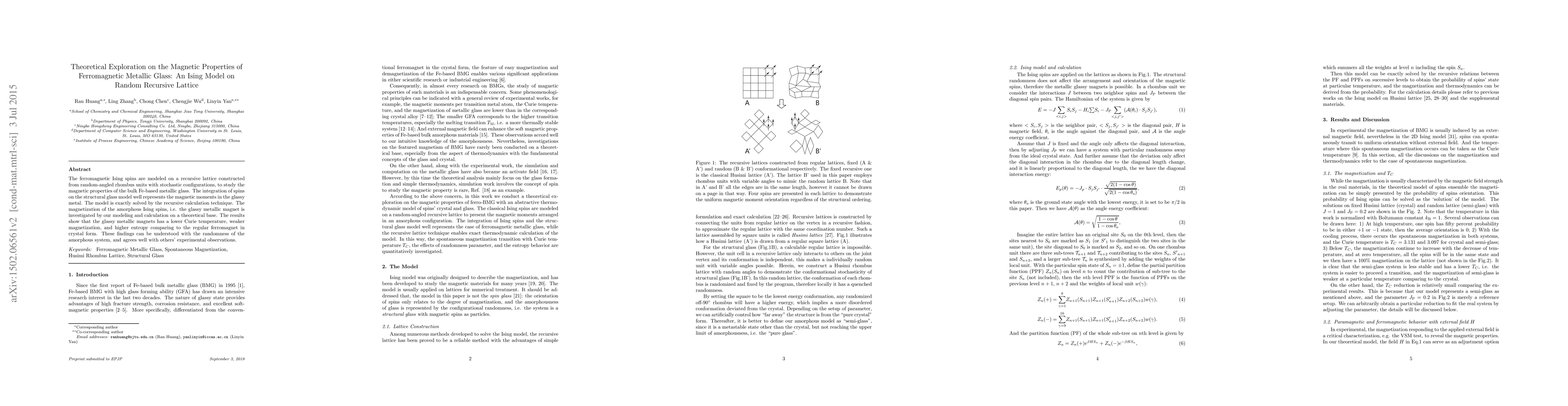 A theoretical model of ferromagnetic metallic glass shows it has a lower Curie temperature, weaker magnetization, and higher entropy compared to traditional crystals.