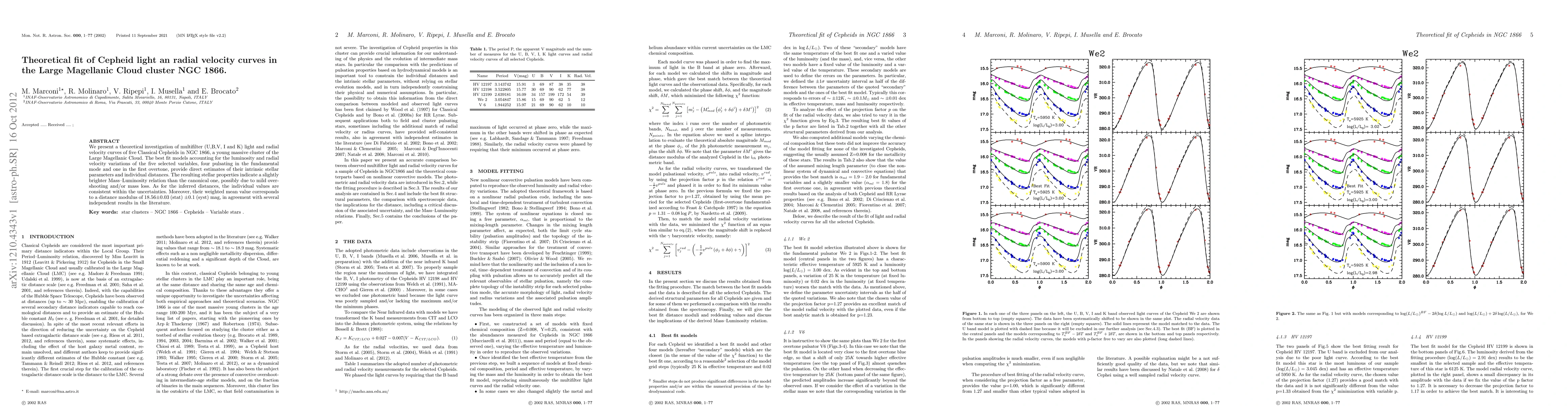 This paper investigates the theoretical fit of multifilter light and radial velocity curves for five Cepheids in NGC 1866, yielding intrinsic stellar parameters and individual distances. The study finds a slightly brighter Mass Luminosity relation and a distance modulus of 18.56 ± 0.03 (stat) ± 0.1 (syst) mag, consistent with other estimates.