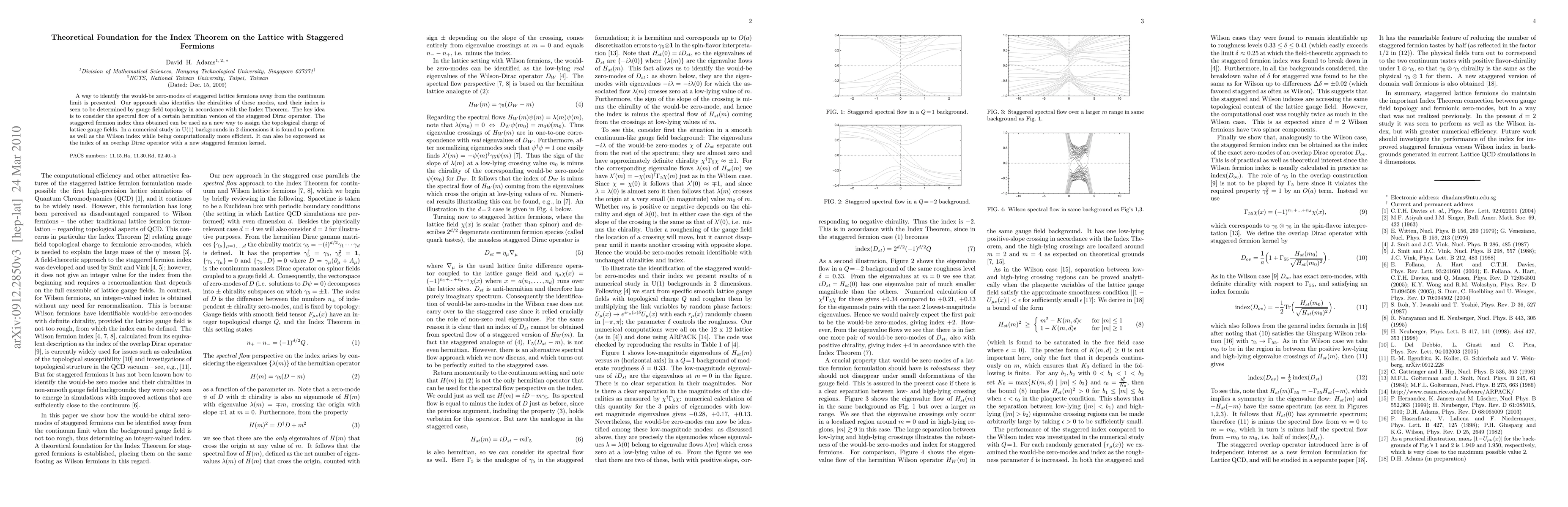 A way to identify the would-be zero-modes of staggered lattice fermions away from the continuum limit is presented. Our approach also identifies the chiralities of these modes, and their index is seen to be determined by gauge field topology in accordance with the Index Theorem. The key idea is to consider the spectral flow of a certain hermitian version of the staggered Dirac operator. The staggered fermion index thus obtained can be used as a new way to assign the topological charge of lattice gauge fields. In a numerical study in U(1) backgrounds in 2 dimensions it is found to perform as well as the Wilson index while being computationally more efficient. It can also be expressed as the index of an overlap Dirac operator with a new staggered fermion kernel.