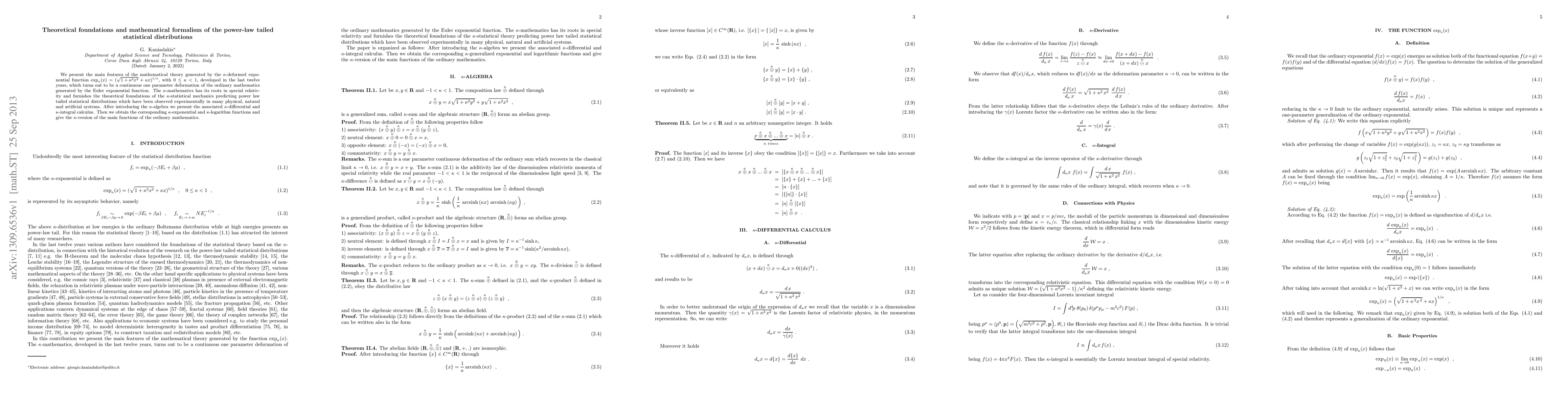 This paper explores the theoretical underpinnings of the κ-deformed exponential function, which provides a continuous deformation of traditional mathematics rooted in special relativity. It lays the groundwork for κ-statistical mechanics, predicting power-law tailed distributions observed in various systems, and introduces the κ-algebra, differential, integral calculus, and associated κ-exponential and κ-logarithm functions.
