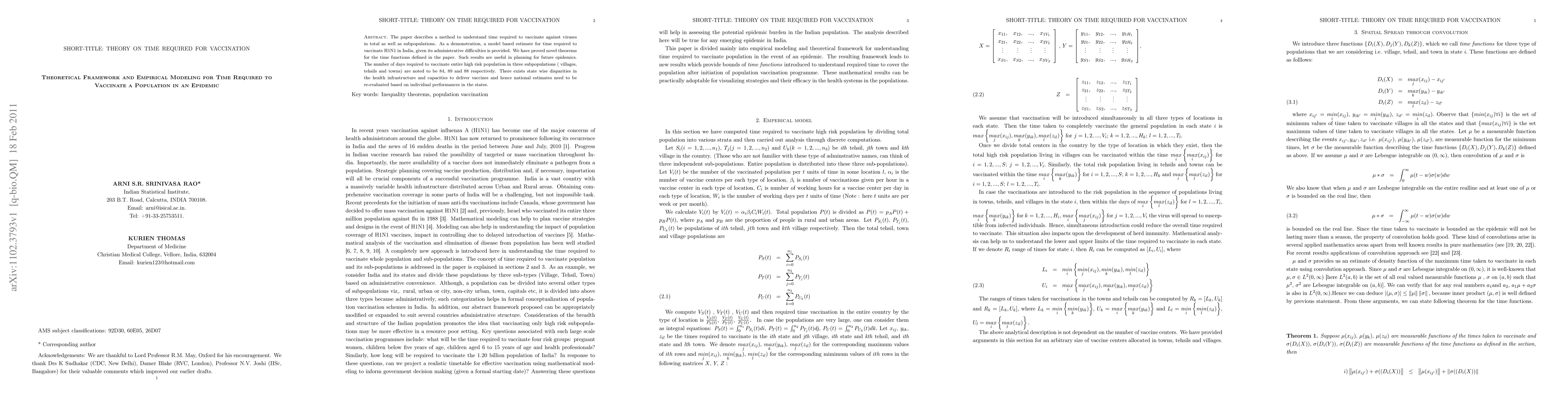 This paper develops a theoretical framework and empirical model to estimate the time required for vaccinating populations against viruses, with a focus on H1N1 in India. The study highlights significant disparities in vaccination timelines across different subpopulations and states, emphasizing the necessity for tailored vaccination strategies based on regional health infrastructure.
