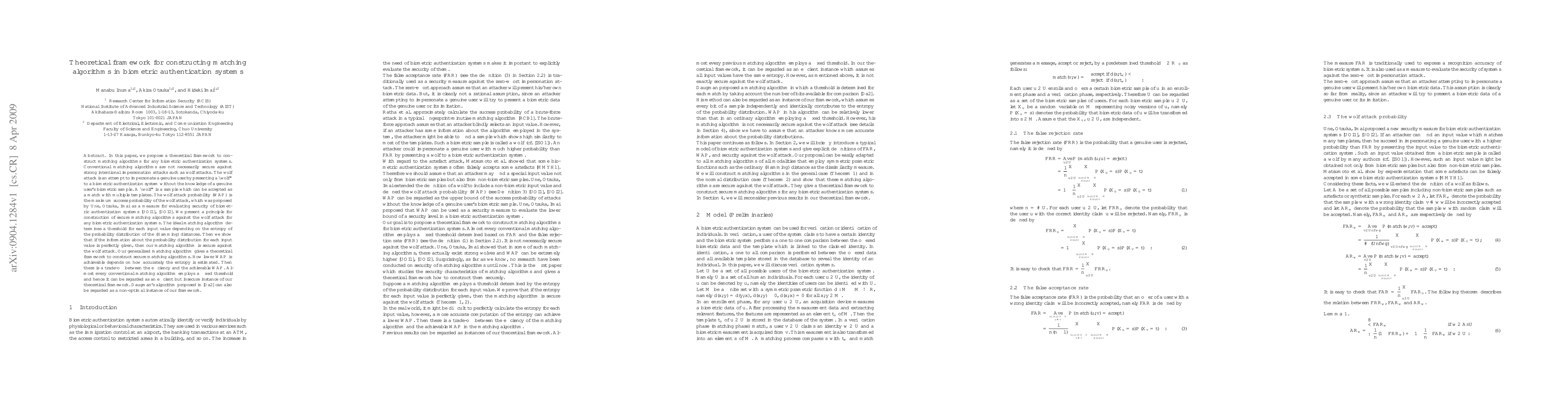 This paper proposes a theoretical framework for constructing secure matching algorithms in biometric authentication systems to defend against wolf attacks, where an attacker uses a "wolf" sample that can match multiple templates. The framework determines dynamic thresholds based on entropy of distance distributions, ensuring security when probability distribution information is accurately known.