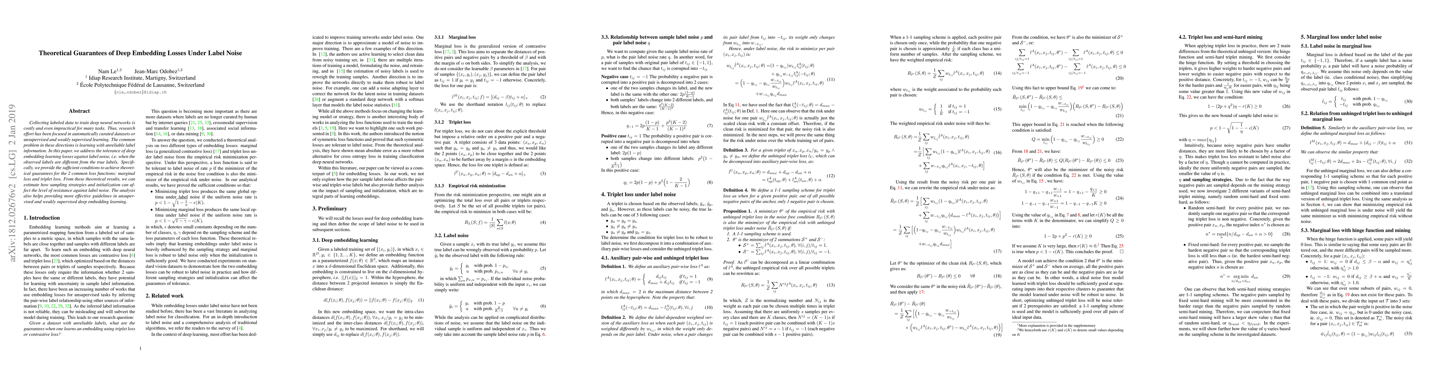 This paper investigates the robustness of deep embedding learning losses—marginal and triplet losses—under label noise, providing theoretical conditions for their performance. It offers insights into how sampling strategies and initialization affect resistance to label noise, aiding in the development of more effective unsupervised and weakly supervised learning methods.